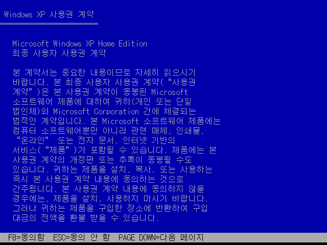 사용권 계약서입니다. F8을 눌러 동의합니다.
