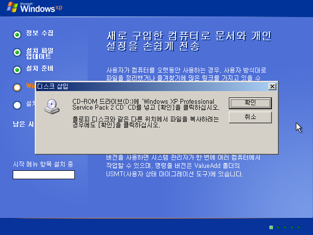 파일을 복사한 후 1번 CD를 다시 넣으라고 합니다. 넣어줍시다.