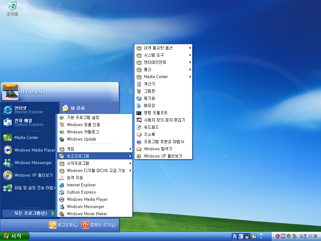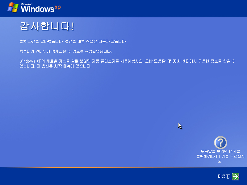 설치가 완료되었습니다. 테마가 저희가 일반적으로 알던 윈도우 XP의 테마가 아니네요.