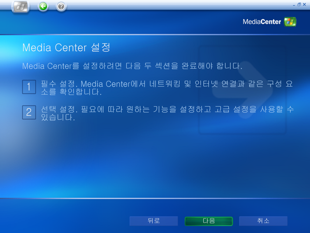 뭐 이것저것 설정해주면 끝납니다. 미디어 센터 2005의 모습입니다.