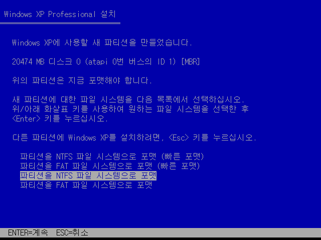 만들어진 파티션을 NTFS 형식으로 포맷합니다.