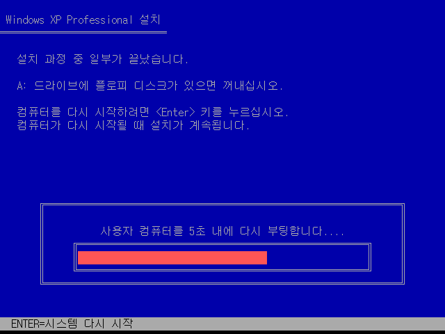 설치 과정 일부가 끝나 시스템을 재시작합니다.