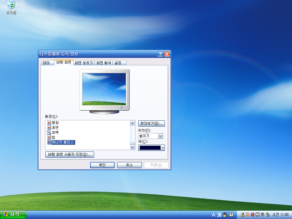 그래픽 드라이버를 설치한 후의 모습입니다. 테마가 다르다보니 뭔가 XP가 아닌 것 같습니다 ㅋㅋㅋ 이게 좀 더 입체감이 살고 좋은 것 같네요.