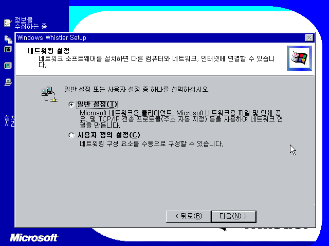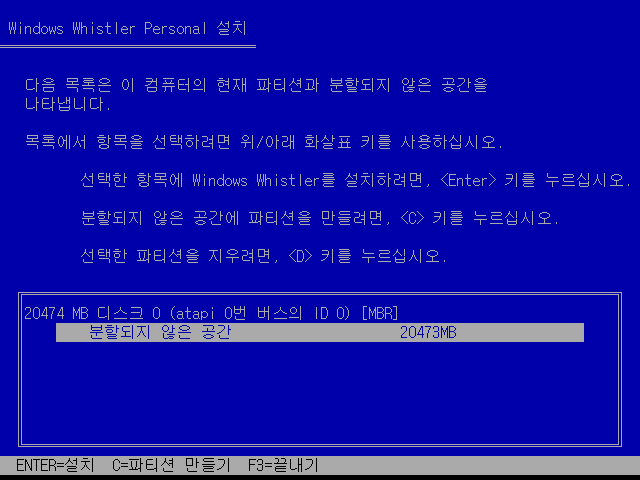 이상 Windows Whistler Beta 1 Build 2296 Personal 설치기였습니다.