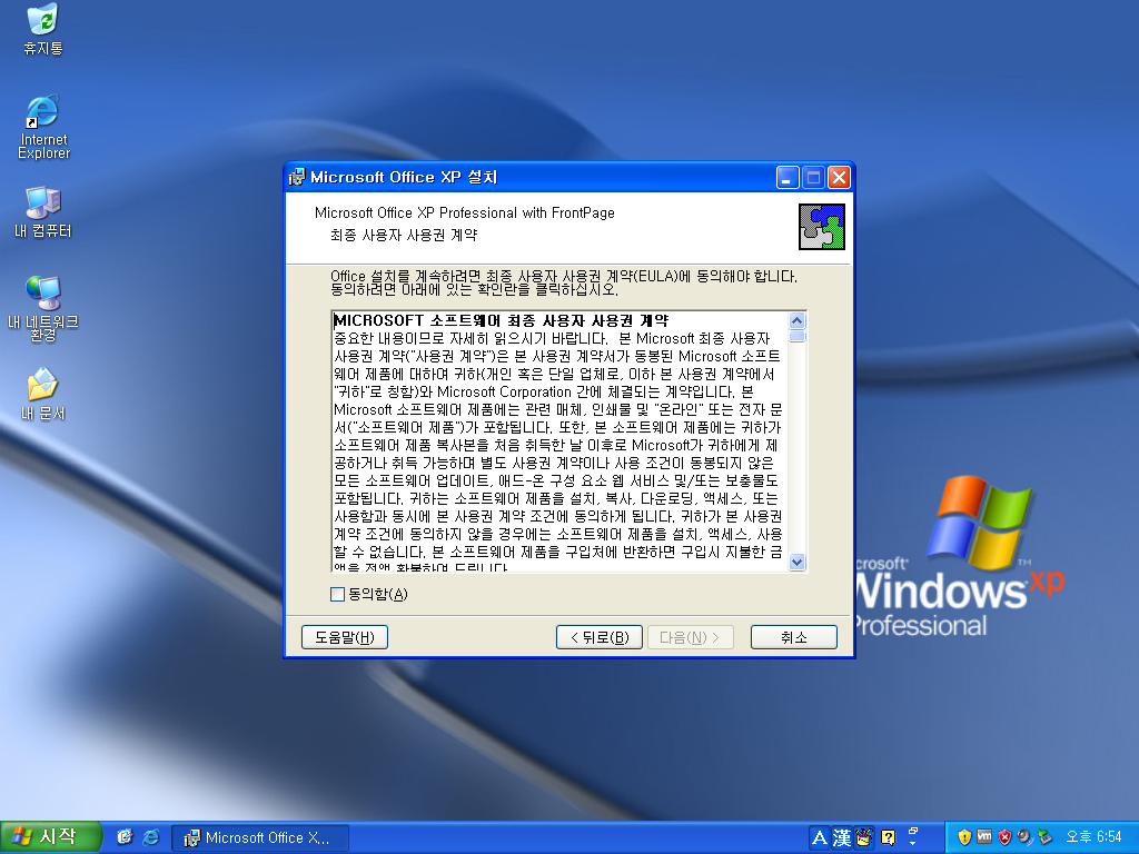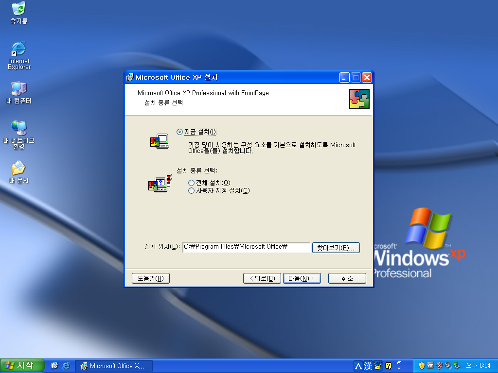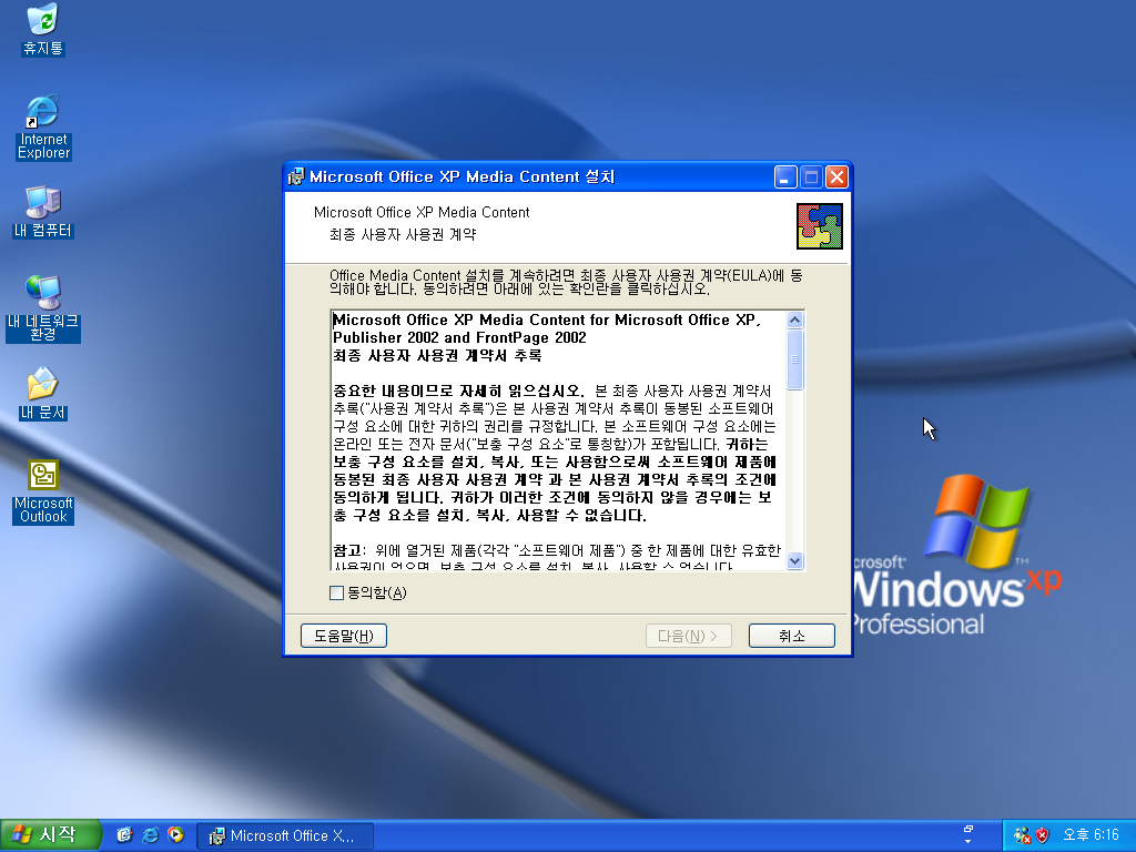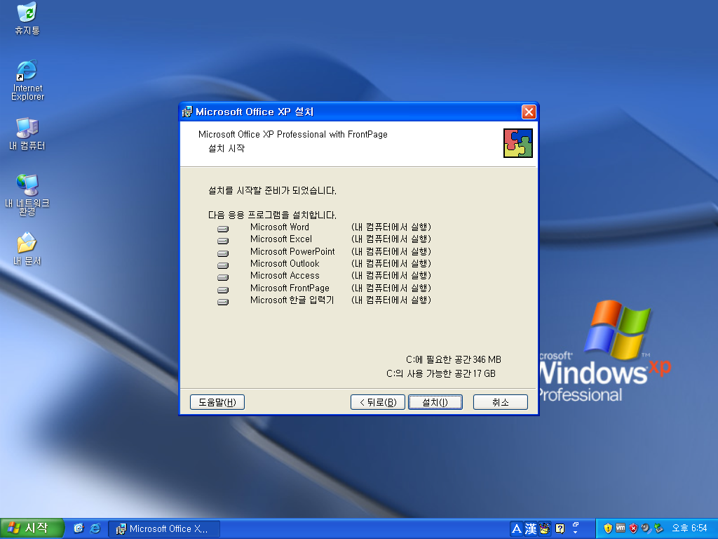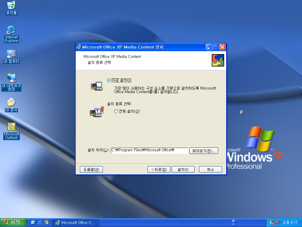 마이크로소프트 오피스 XP 플러스 팩을 설치합니다.