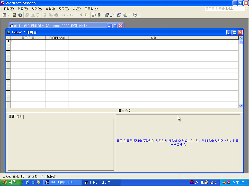 액세스의 모습입니다. 데이터베이스를 작성할 수 있습니다.