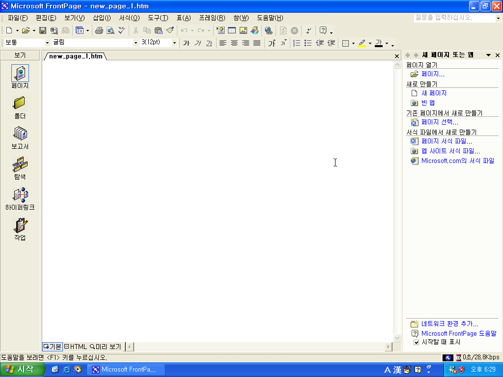HTML 웹에디터인 프론트페이지의 모습입니다.