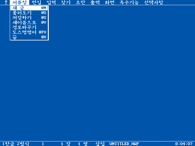 한글 1.51의 모습입니다. 한글 1.5에서 달라진 건 없어 보입니다.