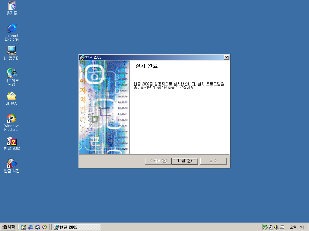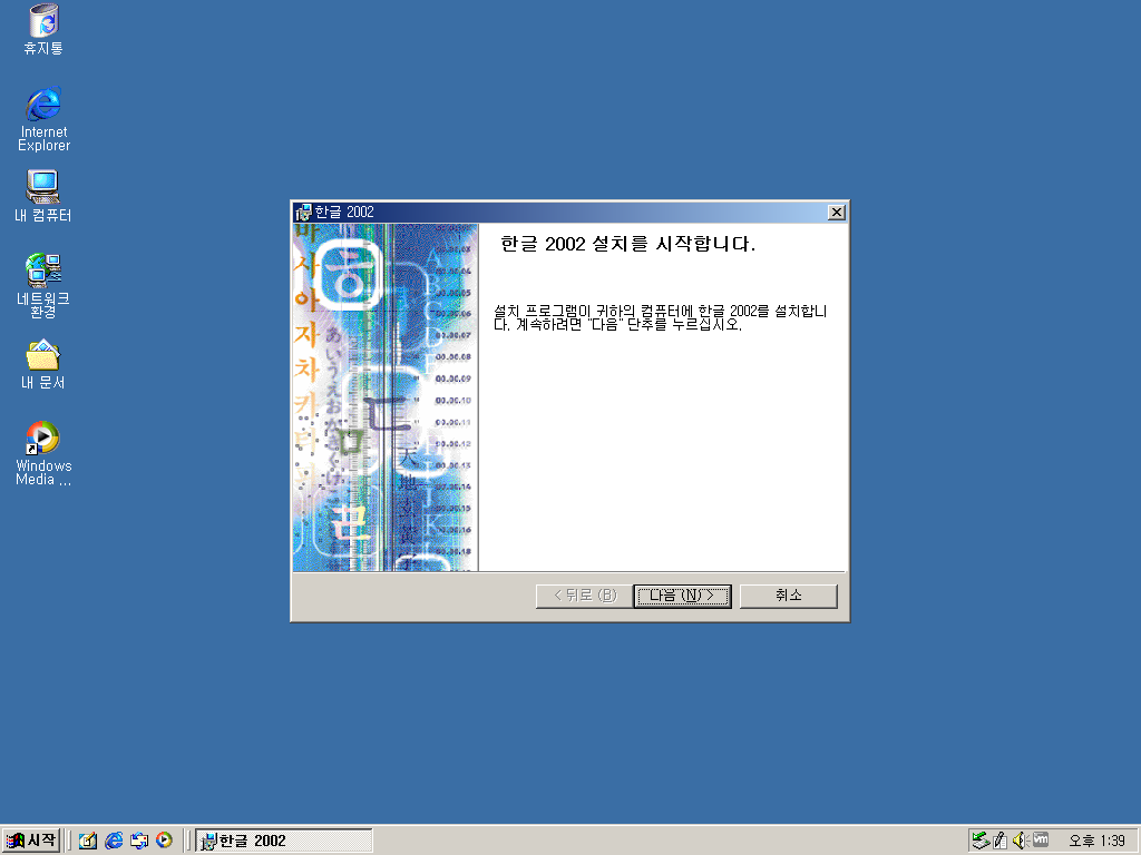 이게 저희가 일반적으로 알고 있는 한글 2002의 설치 화면입니다. 확실히 아예 다릅니다.