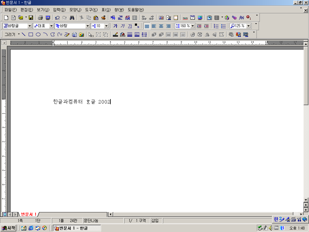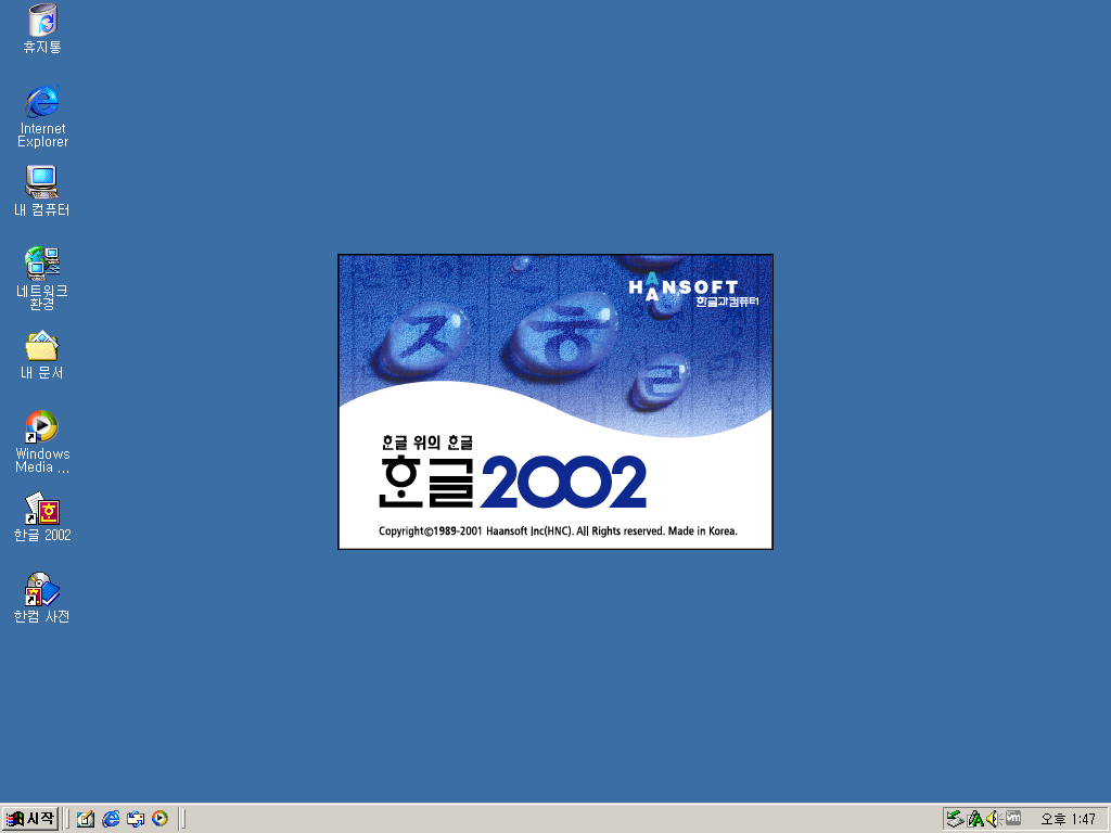 막상 실행하고 나면 다른 점은 딱히 없어보입니다. 그냥 한글 2002입니다. 다만 초판은 실행할 때 브금이 나옵니다.