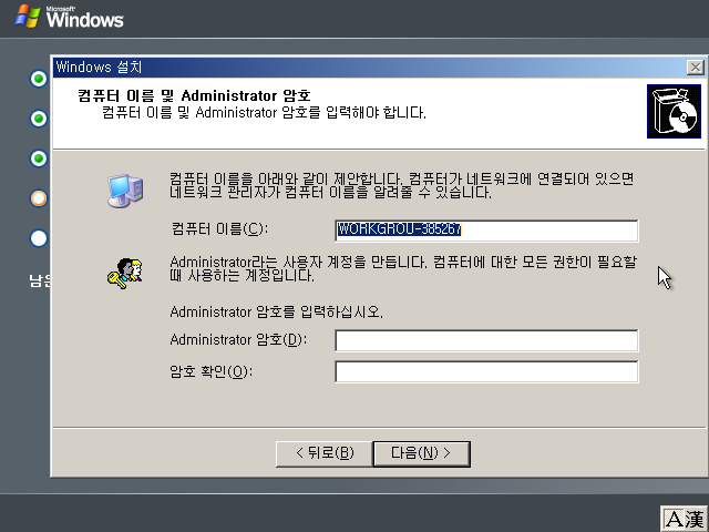컴퓨터 이름과 관리자 계정 암호를 입력해줍니다.