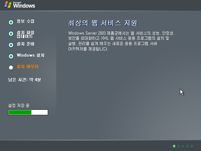 이상 Windows Server 2003 R2 Enteprise x64 Edition 설치기였습니다.
