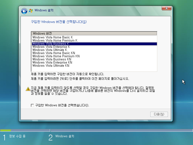 에디션을 선택합니다. 비즈니스 K를 선택합니다.