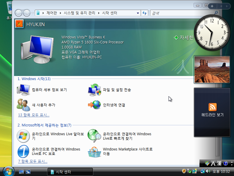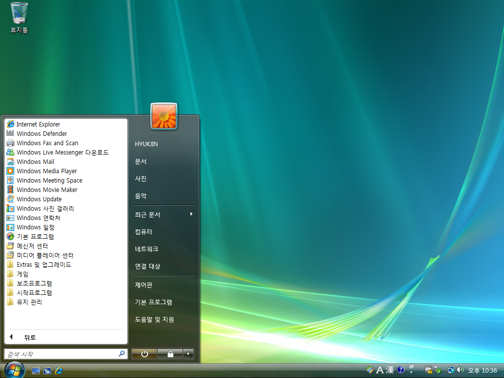 그래픽 드라이버를 잡은 후의 모습입니다. 다시 봐도 비스타 기본 배경화면은 예쁩니다.