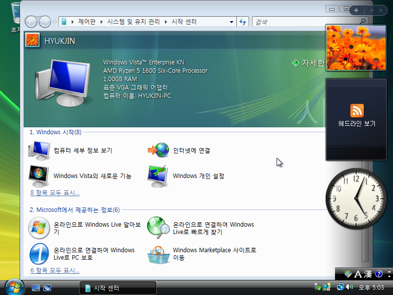 그래픽 드라이버를 잡은 후의 모습입니다. 비스타 그래픽의 아름다움은 뭐 말할 필요가 없네요.