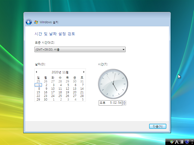 윈도우 비스타 설치를 시작합니다. 다음을 누릅니다.