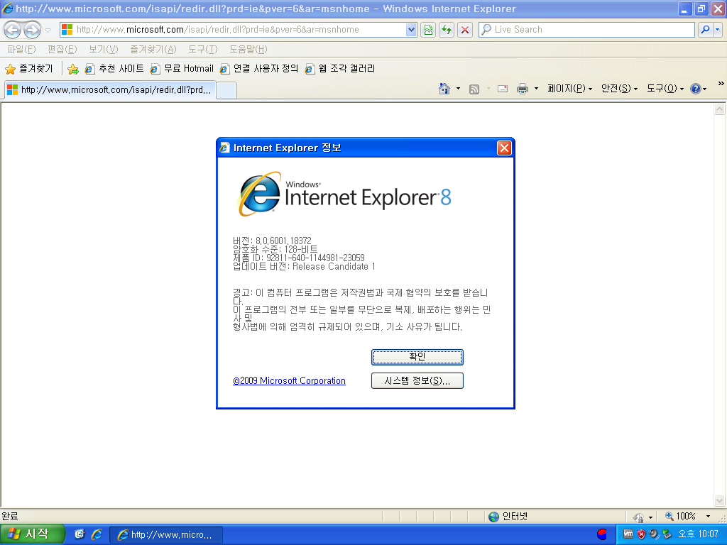 윈도우 XP용 인터넷 익스플로러 8 RC1입니다. 빌드 넘버는 8.0.6001.18372입니다. 16.1MB 설치 파일입니다.