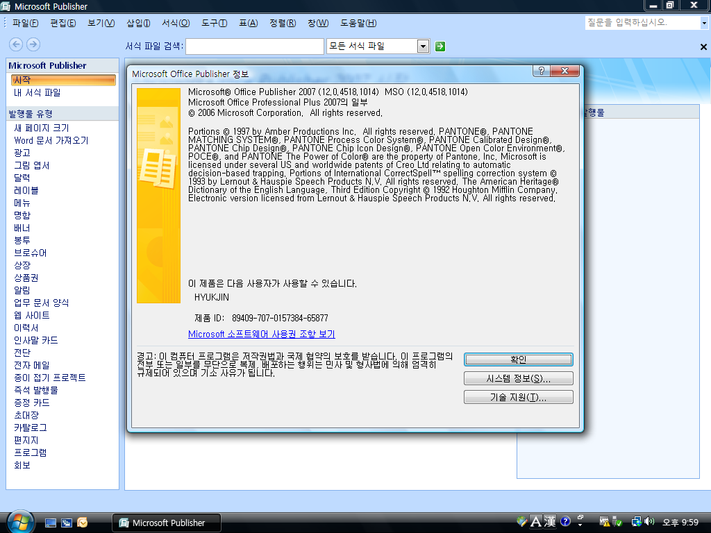 퍼블리셔 정보입니다. 버전 2007입니다. 빌드 넘버는 12.0.4518.1014입니다.