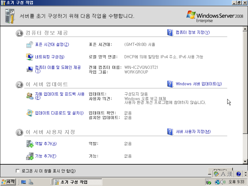 이상 Windows Server 2008 Enterprise Edition 설치기였습니다.