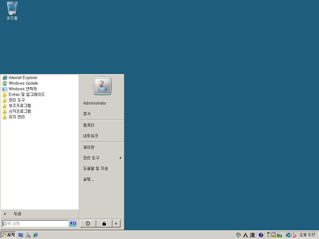 시작 메뉴입니다. 서버라서 그런지 다채로운 프로그램들이 없습니다.