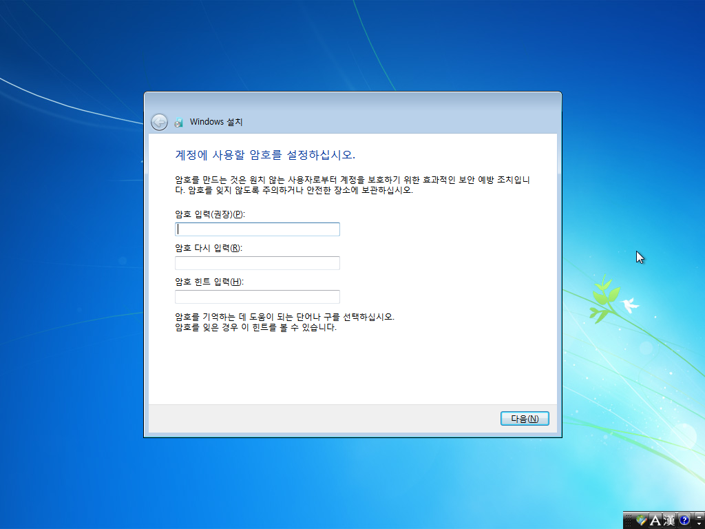 암호를 설정합니다.