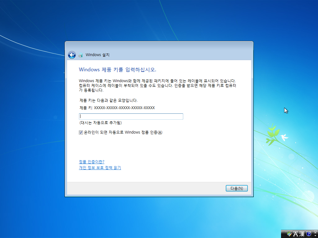 제품 키를 입력합니다. 어차피 베타라서 있지도 않으니 넘어갑시다.