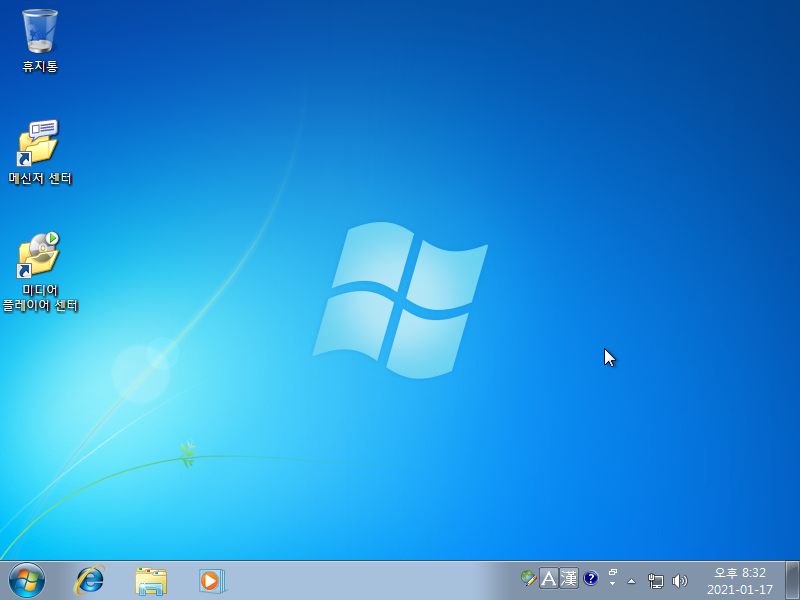 그래픽 드라이버를 설치한 후의 모습입니다. 어차피 에어로 기능을 지원하지 않아서 다를 건 없습니다. 바탕화면의 윈도우 로고도 다른 에디션들과 달리 하늘색 한가지 색이며, 배경화면 변경 또한 불가능합니다.