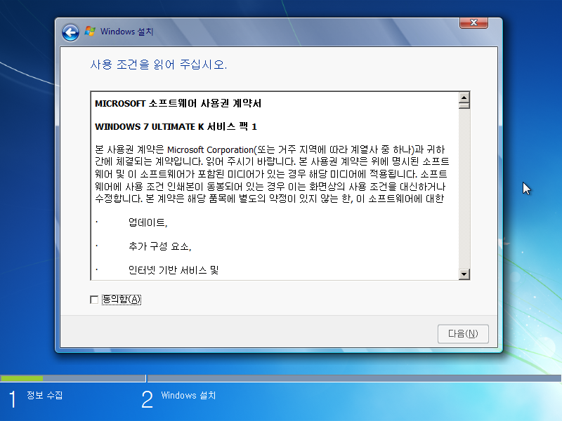 이상 Windows 7 Ultimate K 설치기였습니다.
