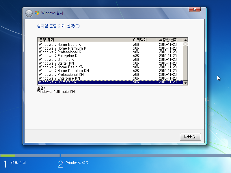 이상 Windows 7 Ultimate KN 설치기였습니다.