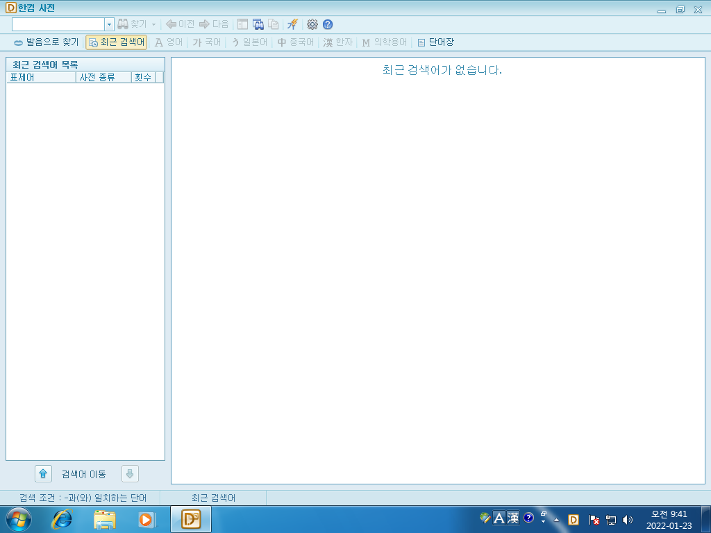 한컴 사전의 모습입니다. 기본적인 사전의 기능을 합니다.