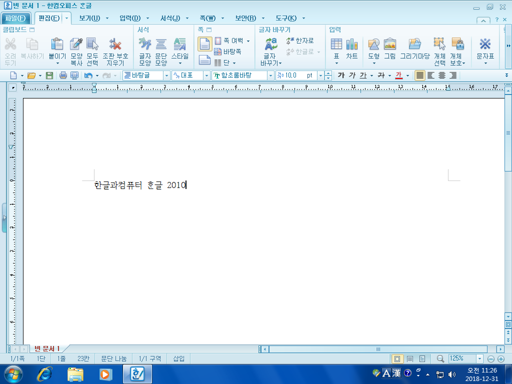 한글 입력 또한 잘 됩니다. 이때부터 기본 서체가 바탕체에서 함초롱바탕으로 변경되었습니다.