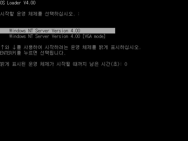 시작할 운영 체제를 선택합니다. 윈도우 NT 서버 버전 4.0을 선택합니다.