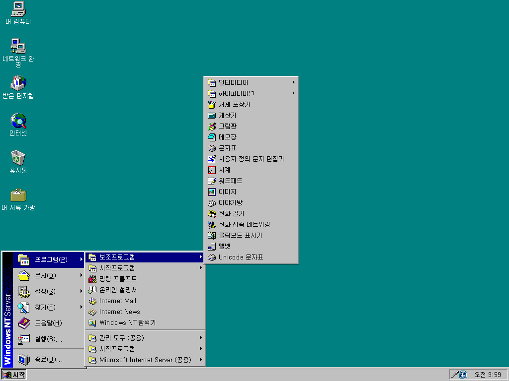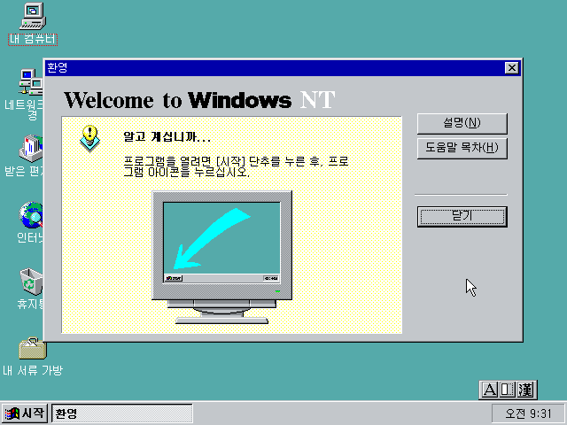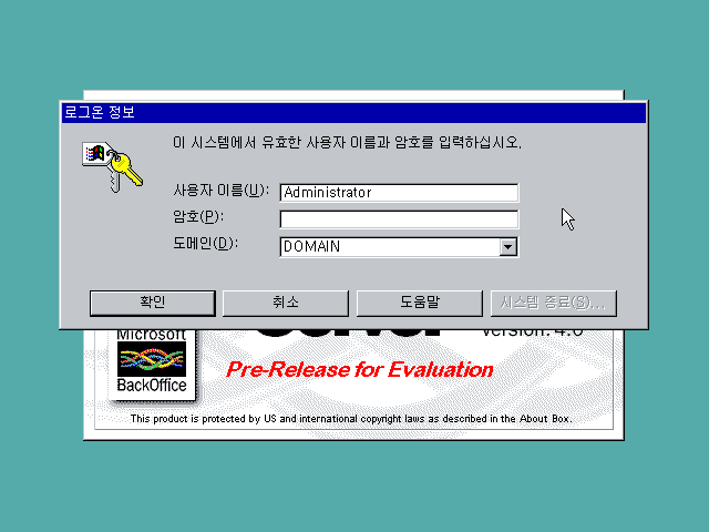 윈도우 NT 서버 4.0 베타판의 모습입니다. 영문판으로 따지면 정식판이기 때문에 사실 다른 건 없습니다.