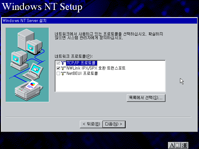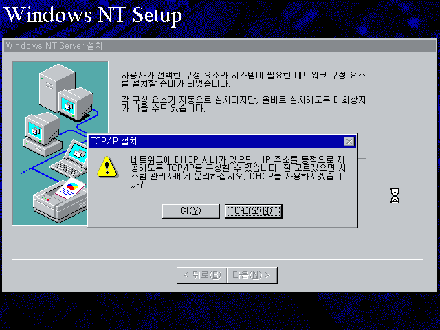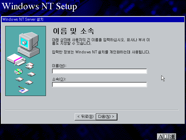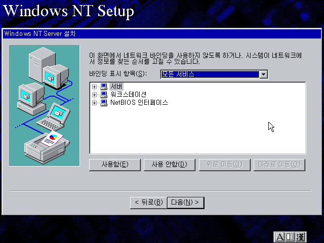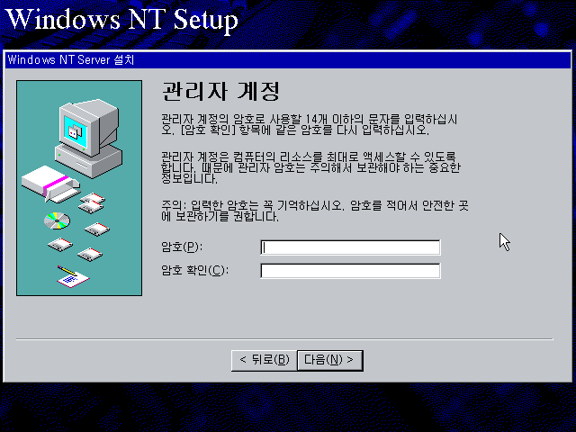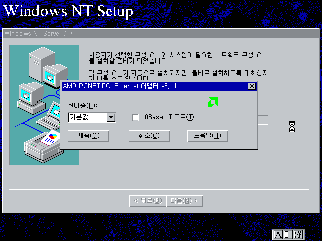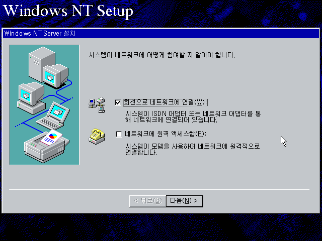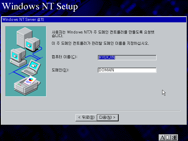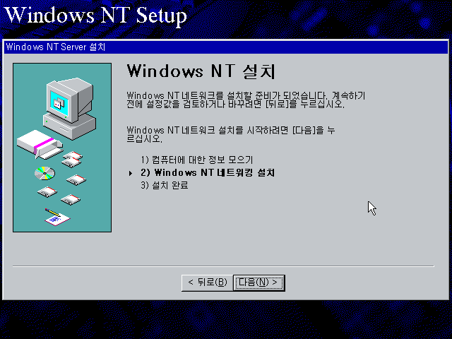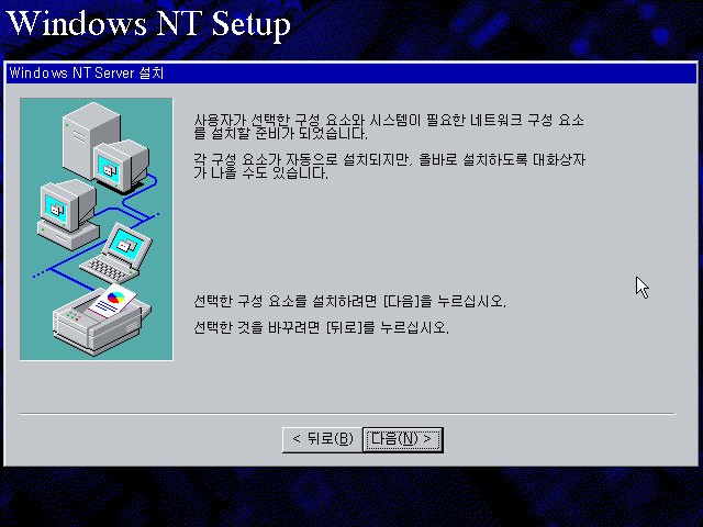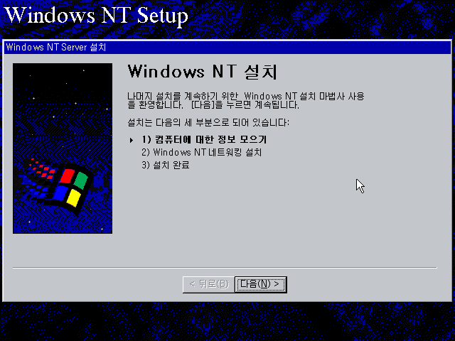 윈도우 NT 설치를 계속합니다. 다음을 누릅니다.