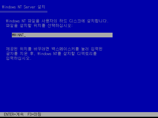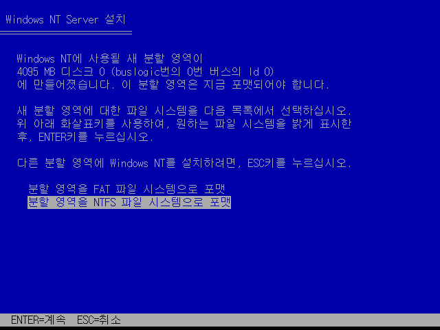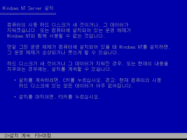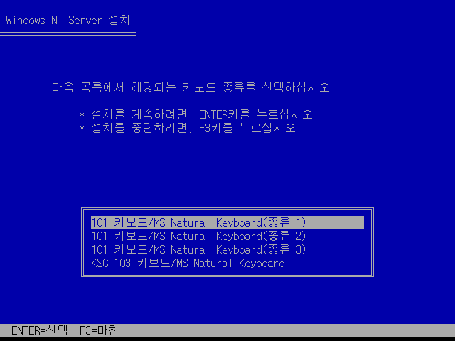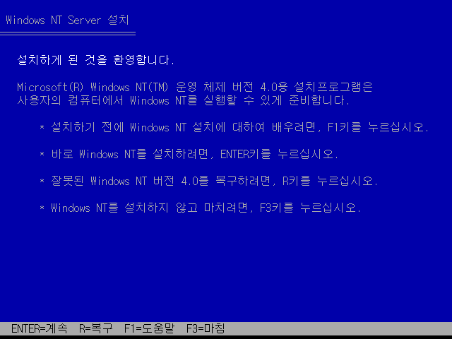 윈도우 NT 4.0 설치를 시작합니다. 엔터를 누릅니다.