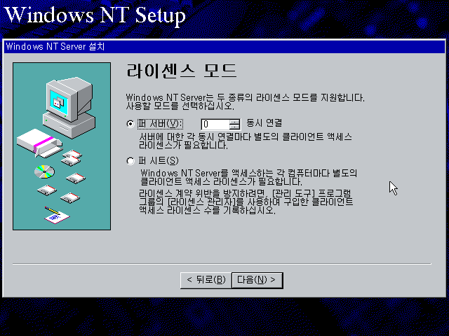 라이센스 모드를 선택합니다. 퍼 서버를 선택합니다.