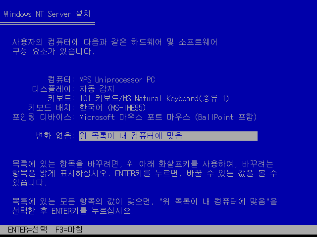 이상 Windows NT Server 4.0 Build 1381 Pre-Release 설치기였습니다.