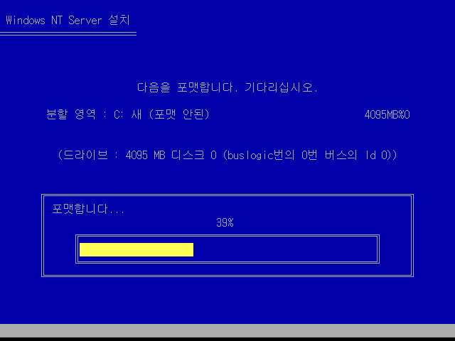 포맷 중입니다. 여기서도 워크스테이션 프리릴리즈 버전과 같이 새 (포맷 안된) 이라는 표기가 등장합니다 ㅋㅋㅋ 정식판에서는 새 것임 (포맷 안됨) 이라고 잘 나옵니다.