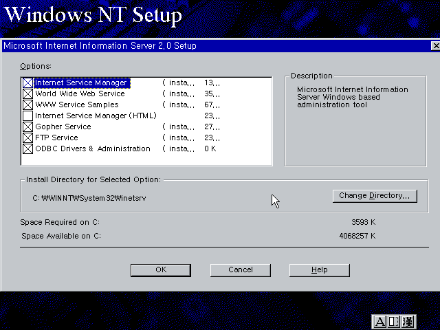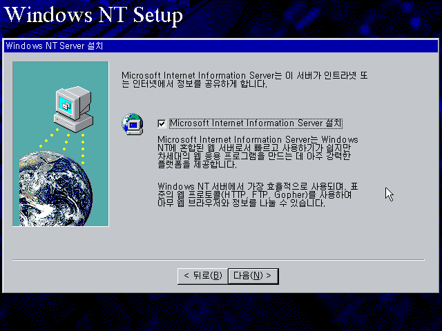 Microsoft Internet Information Server를 설치합니다.