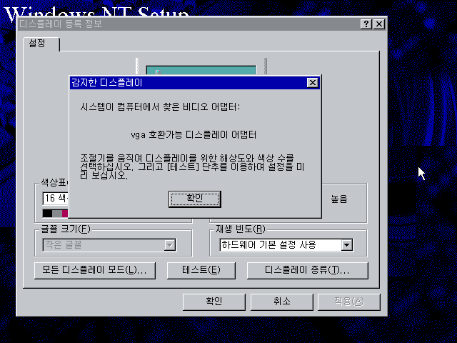 디스플레이 설정입니다. 확인을 누른 후 테스트를 누릅니다.
