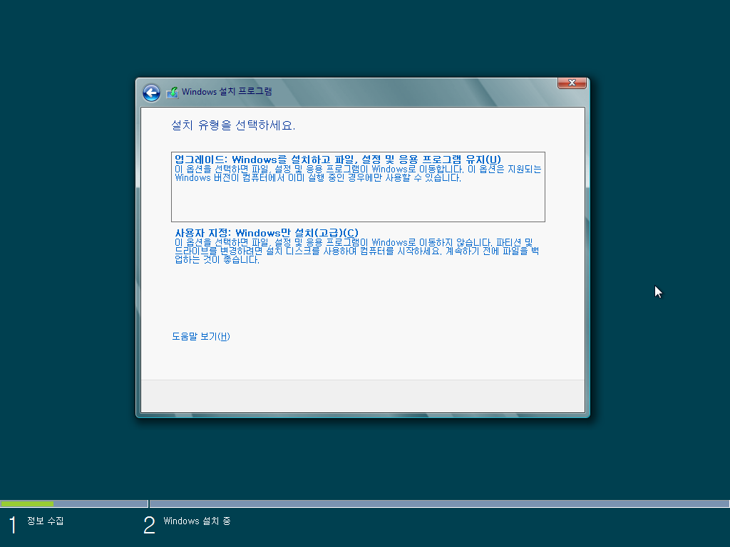 설치 유형을 선택합니다. 사용자 지정을 선택합니다.