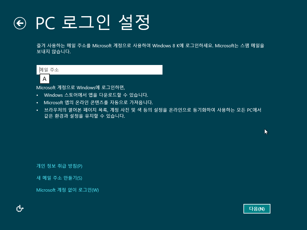 아니면 그냥 일반 로컬 계정을 만들 수 있습니다.