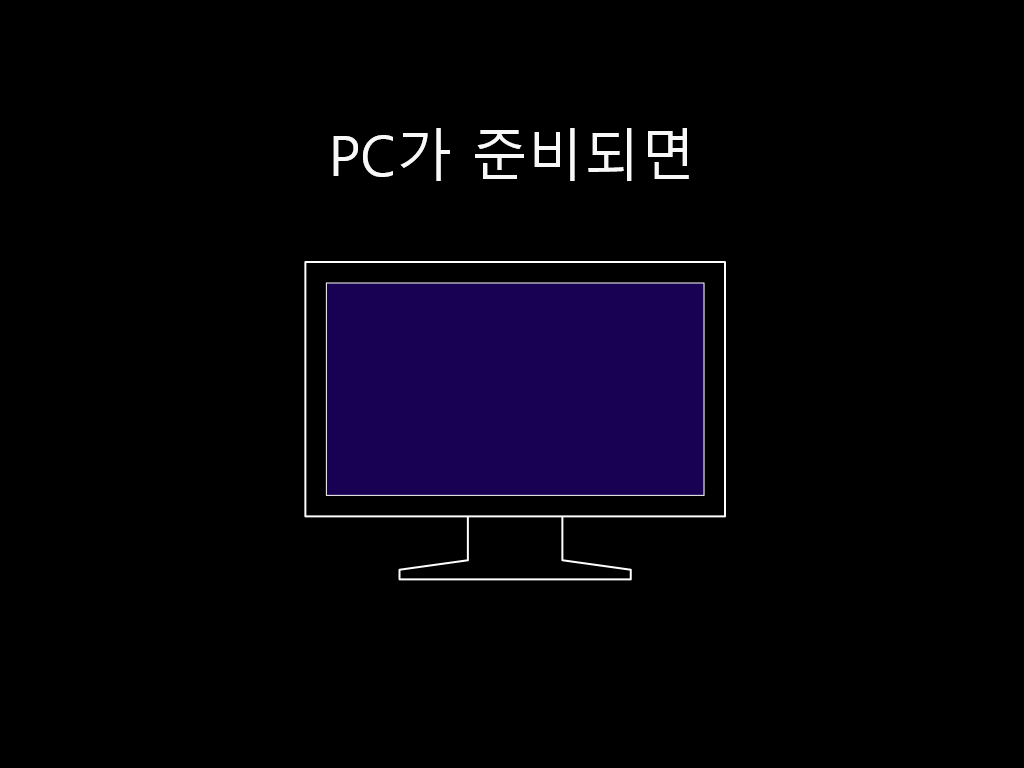 장치를 준비하는 중입니다. 눈치채신 분들도 있으시겠지만 여기서 윈도우 로고와 동글뱅이가 살짝 홀쭉해집니다.