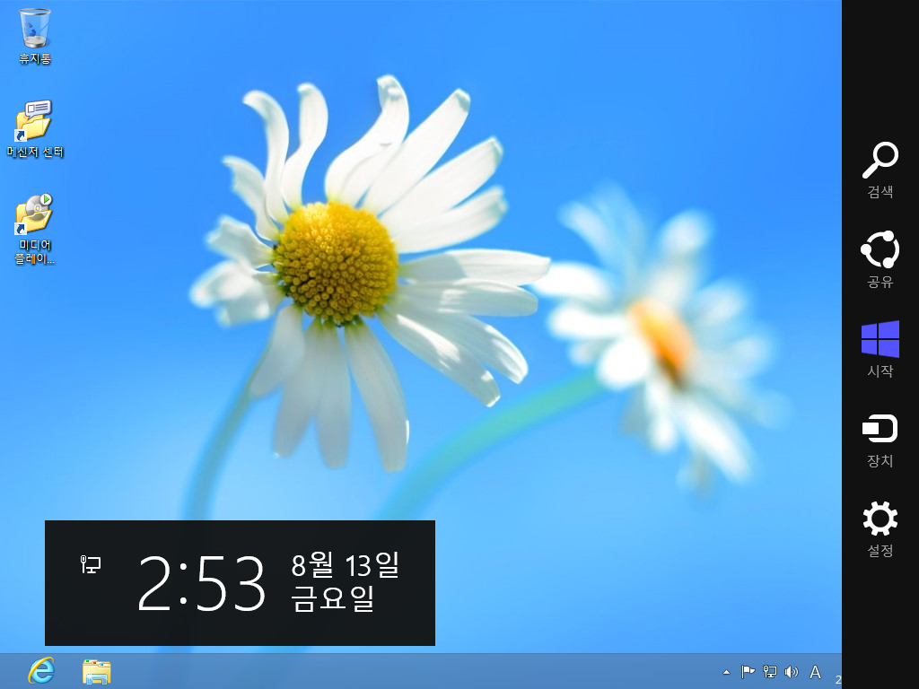 데스크톱은 우리가 일반적으로 아는 바탕화면입니다. 시작 버튼과 메뉴는 사라졌습니다.