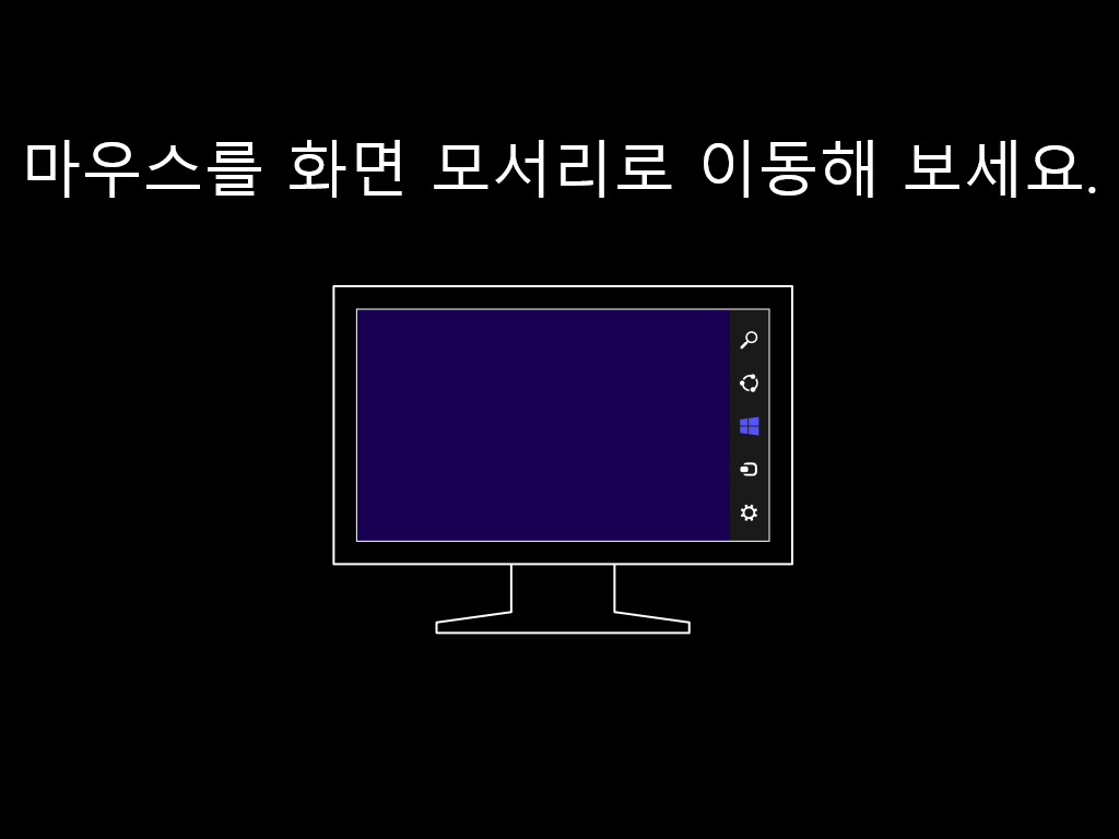 마우스를 화면 오른쪽으로 가져가면 이렇게 사이드바 메뉴가 튀어나옵니다.