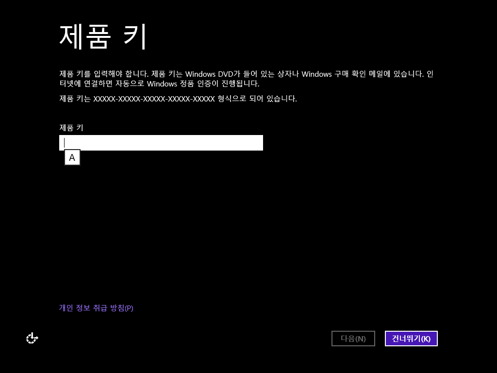 제품 키를 입력합니다. 건너뛰기 할 수도 있습니다.