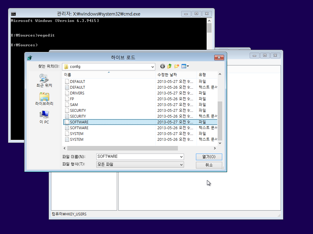 HKEY_USERS에 C:\Windows\System32\config\SOFTWARE 하이브를 로드합니다.