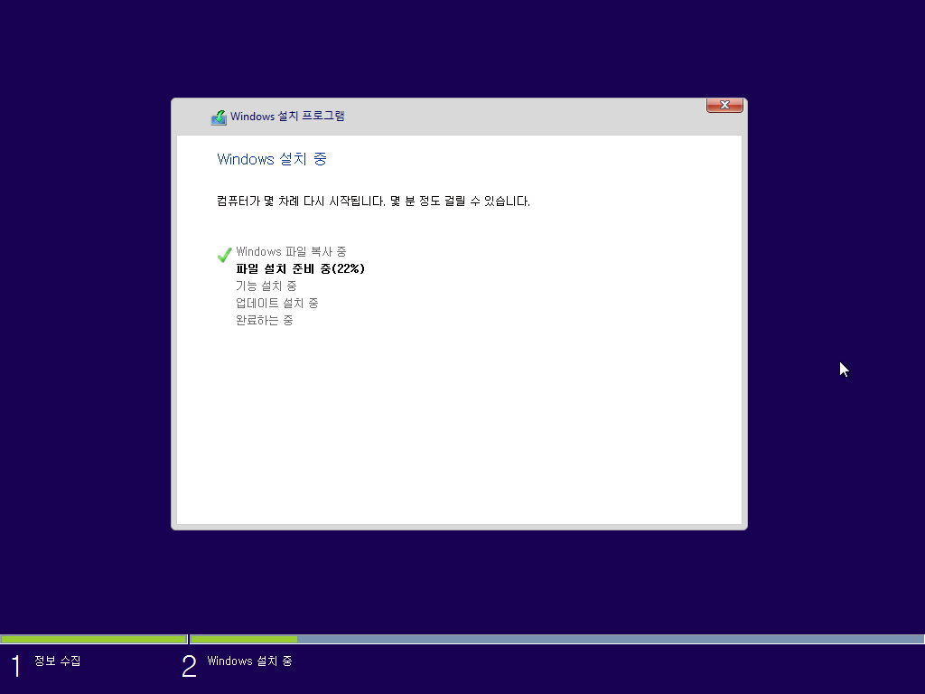 그러면 이렇게 OOBE, 즉 사용자가 처음 시스템 환경을 설정하는 단계가 생략되며 설치가 완료됩니다.