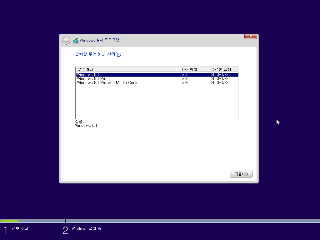 설치할 에디션을 선택합니다. 윈도우 8.1을 선택합니다.