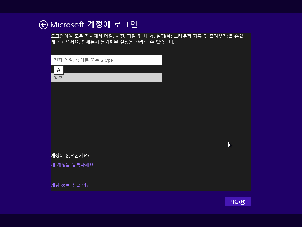 마이크로소프트 계정을 통해 로그인할 수 있습니다. 계정이 없는 경우 새 계정을 등록하세요를 눌러 계정을 만들 수 있습니다.